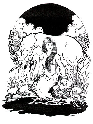 Why I didn't draw the mermaid tail I don't know. If she wasn't a mermaid, that was unfortunately terrible drapery work on her dress. I think that's a Brothers Hildebrant Unicorn.