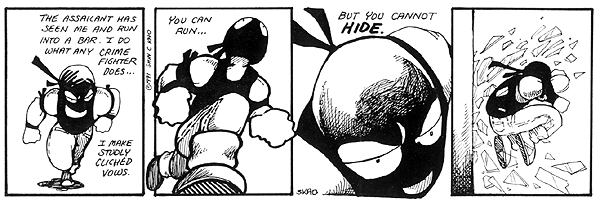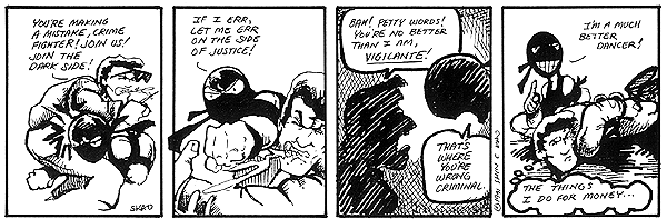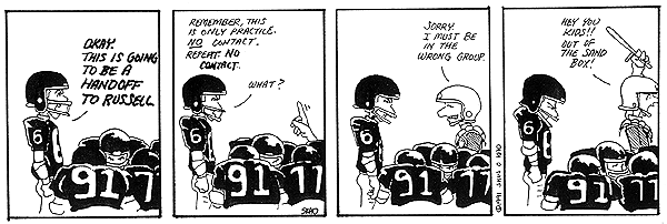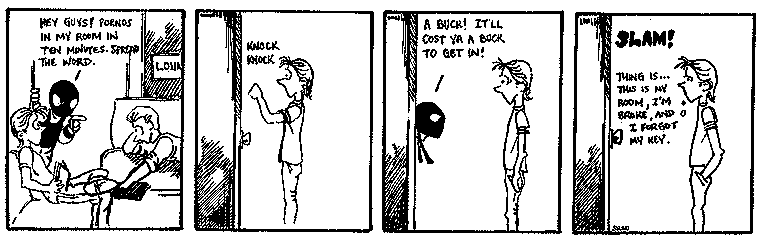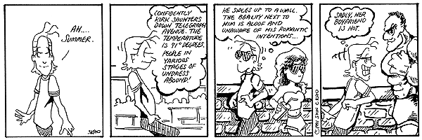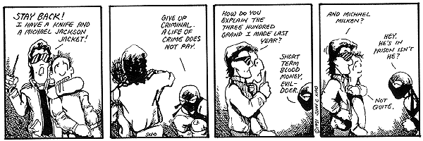 These are some sample strips from 1991. Technically, they're from an early part of the Winner Takes All series of strips but I just wanted to see how the scanning came out. I'll get some more up here soon. I've got over 700 strips to scan in.